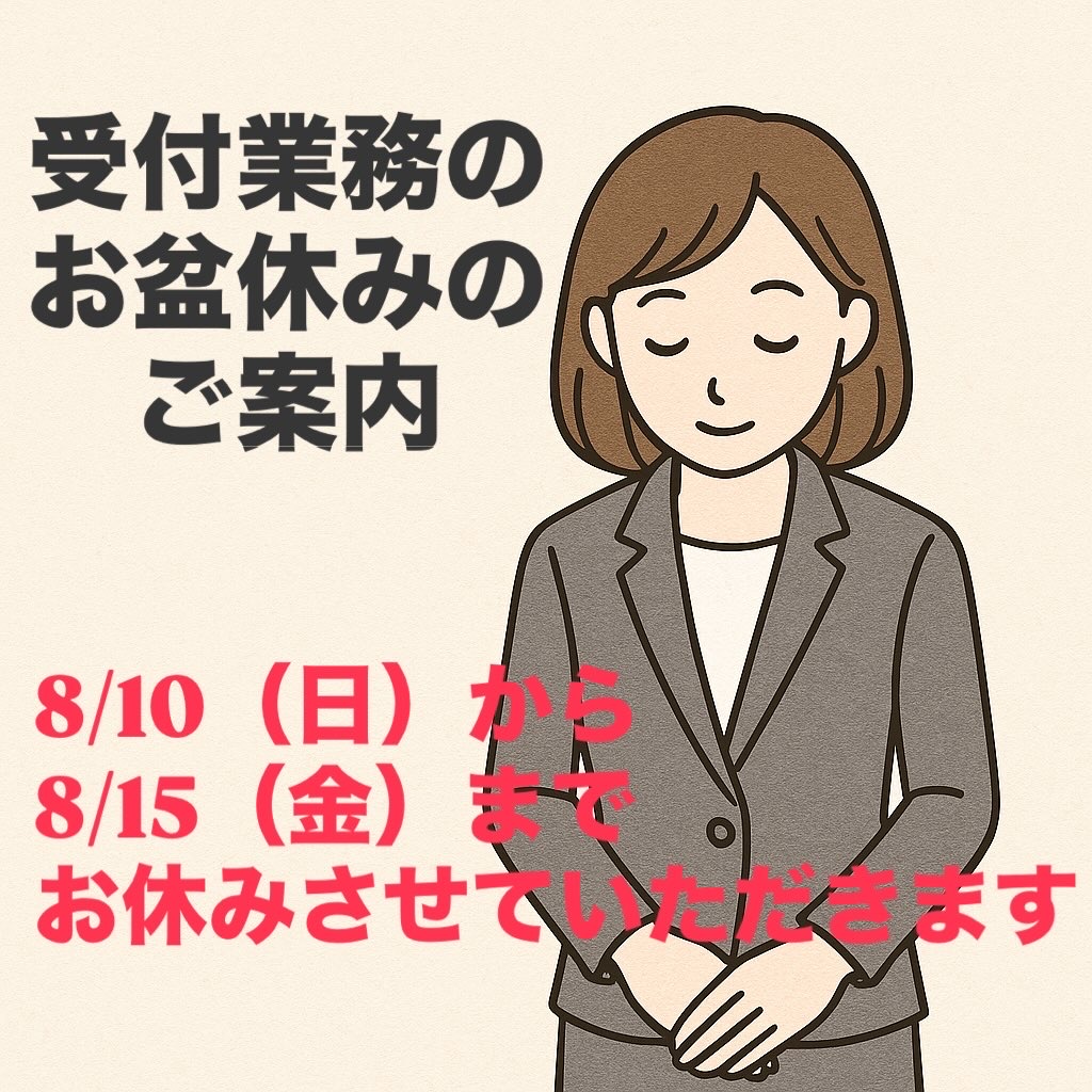 【受付業務 お盆休業のお知らせ】