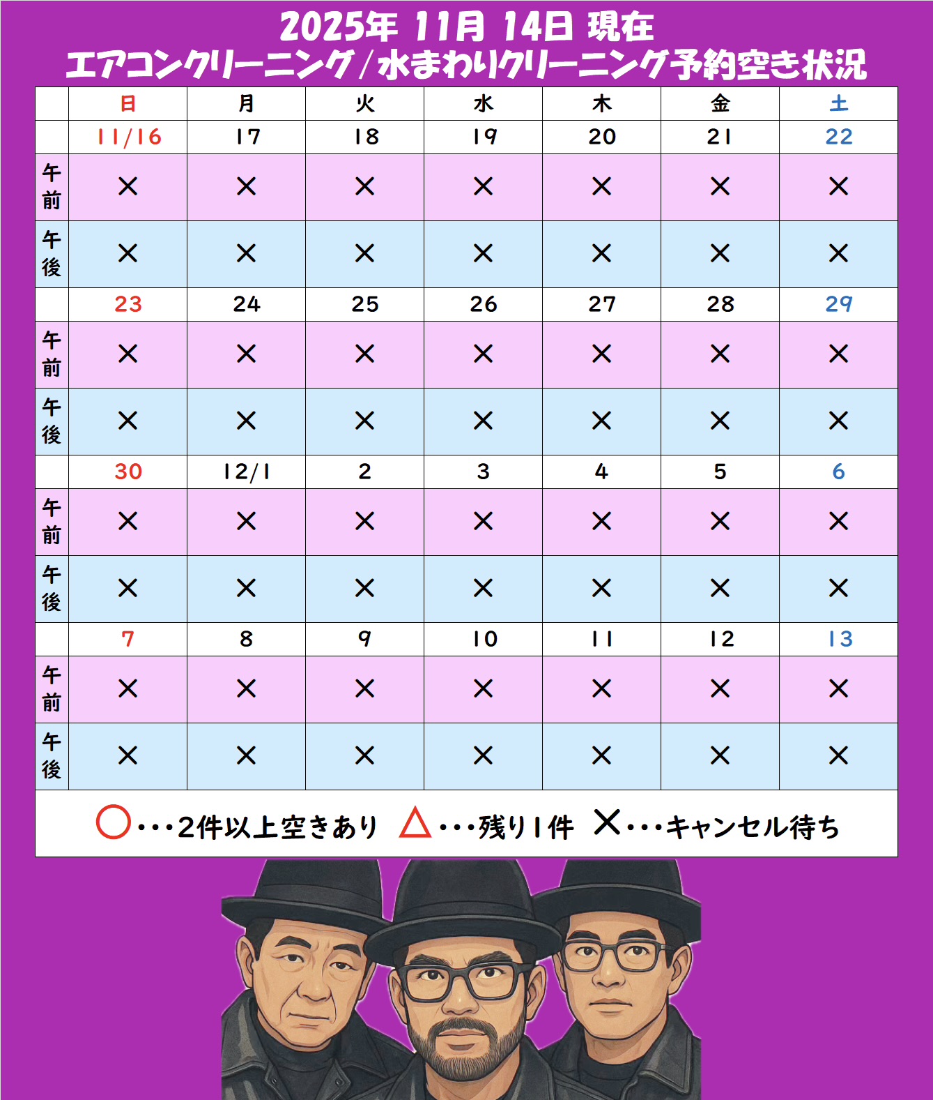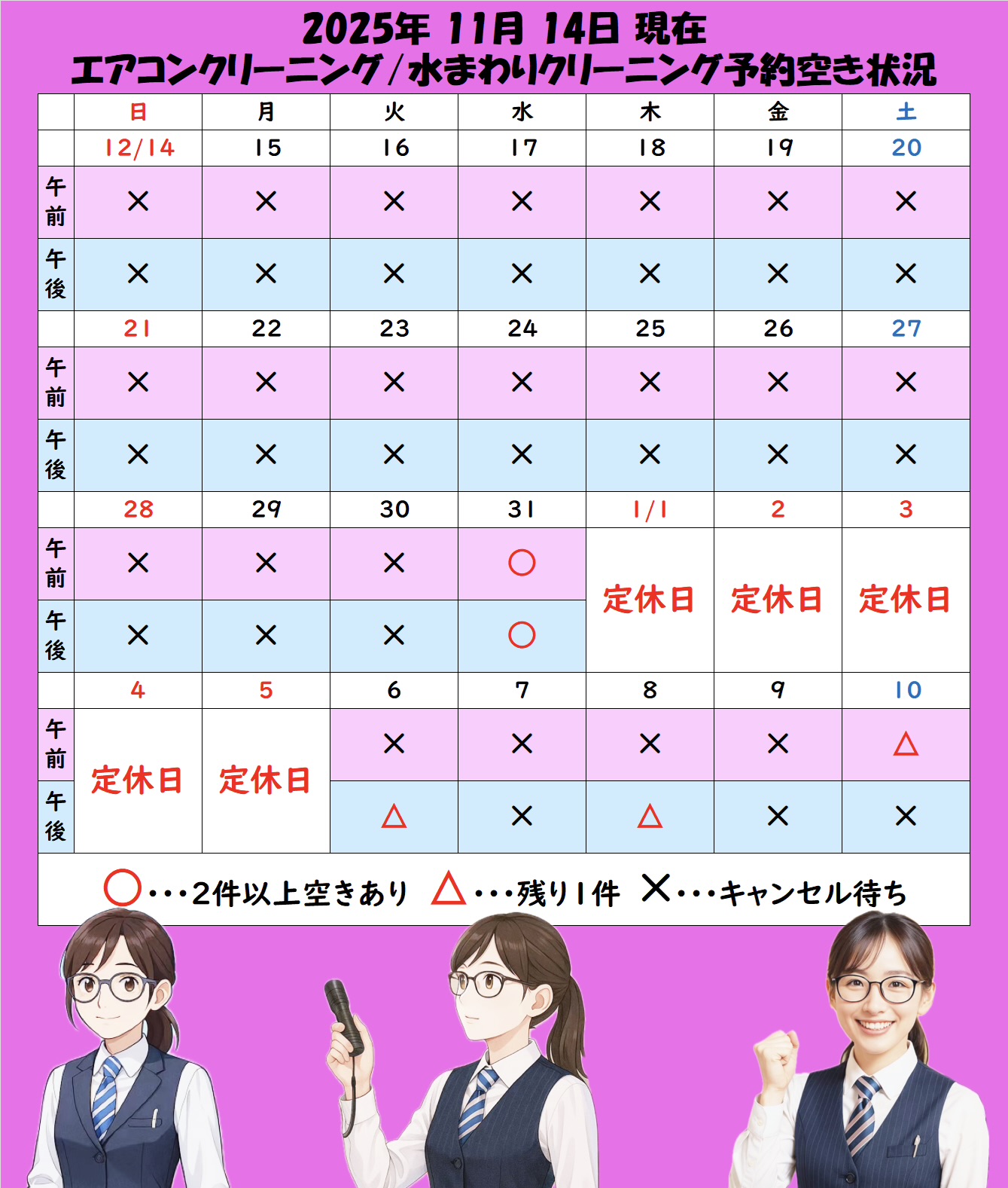 📅 ×=キャンセル待ち