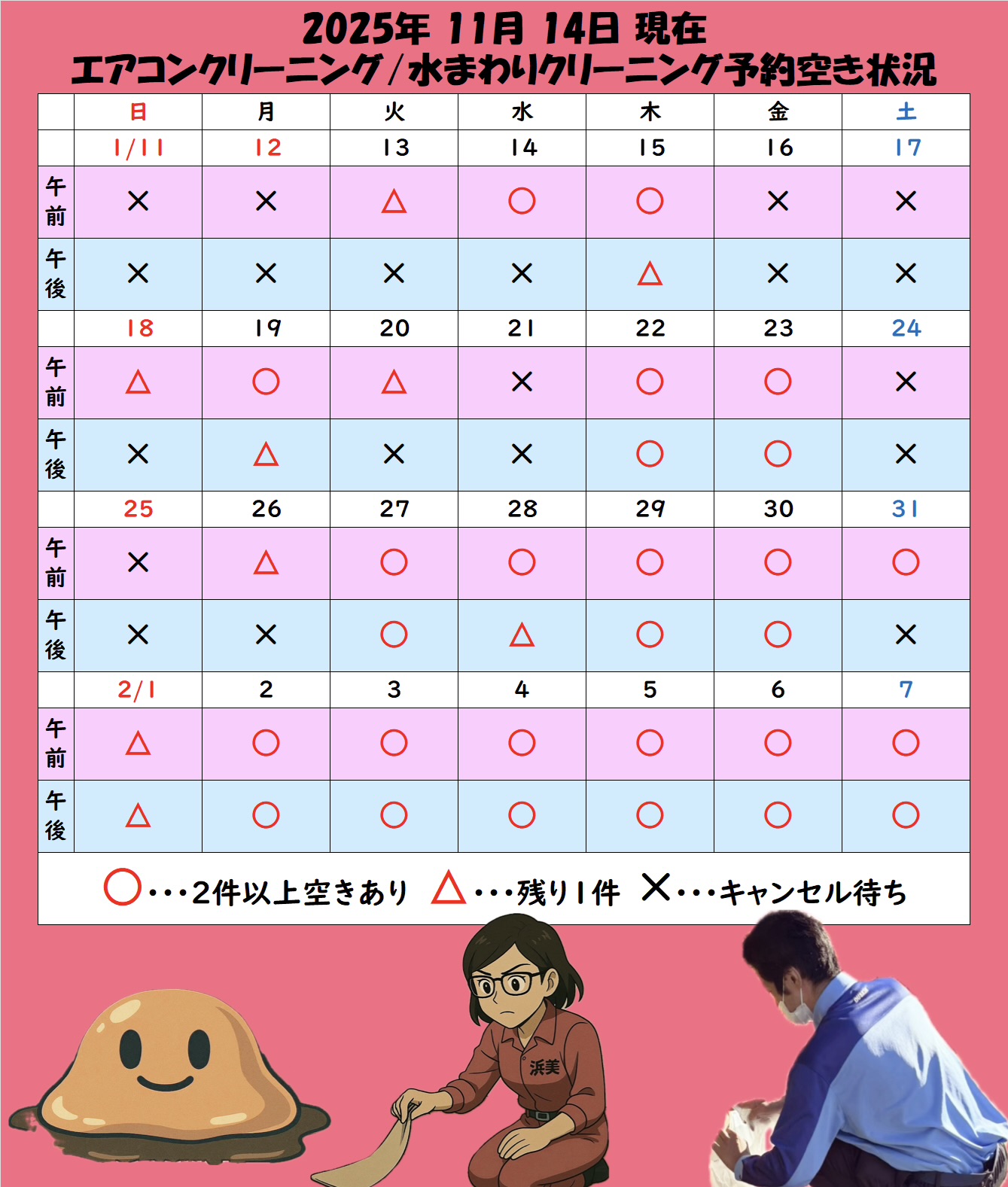 📅 ○=2件以上空きあり