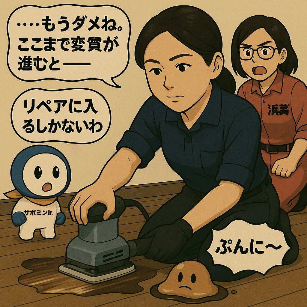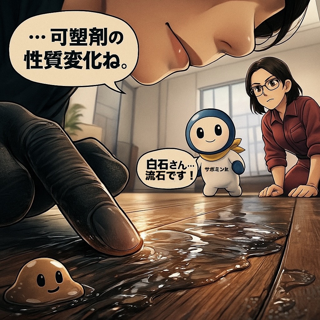 今回は、可塑剤によって“床材そのもの”が変質してしまったケース。