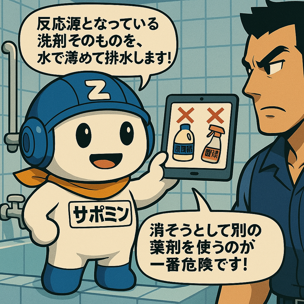 洗剤という反応源が排水され、