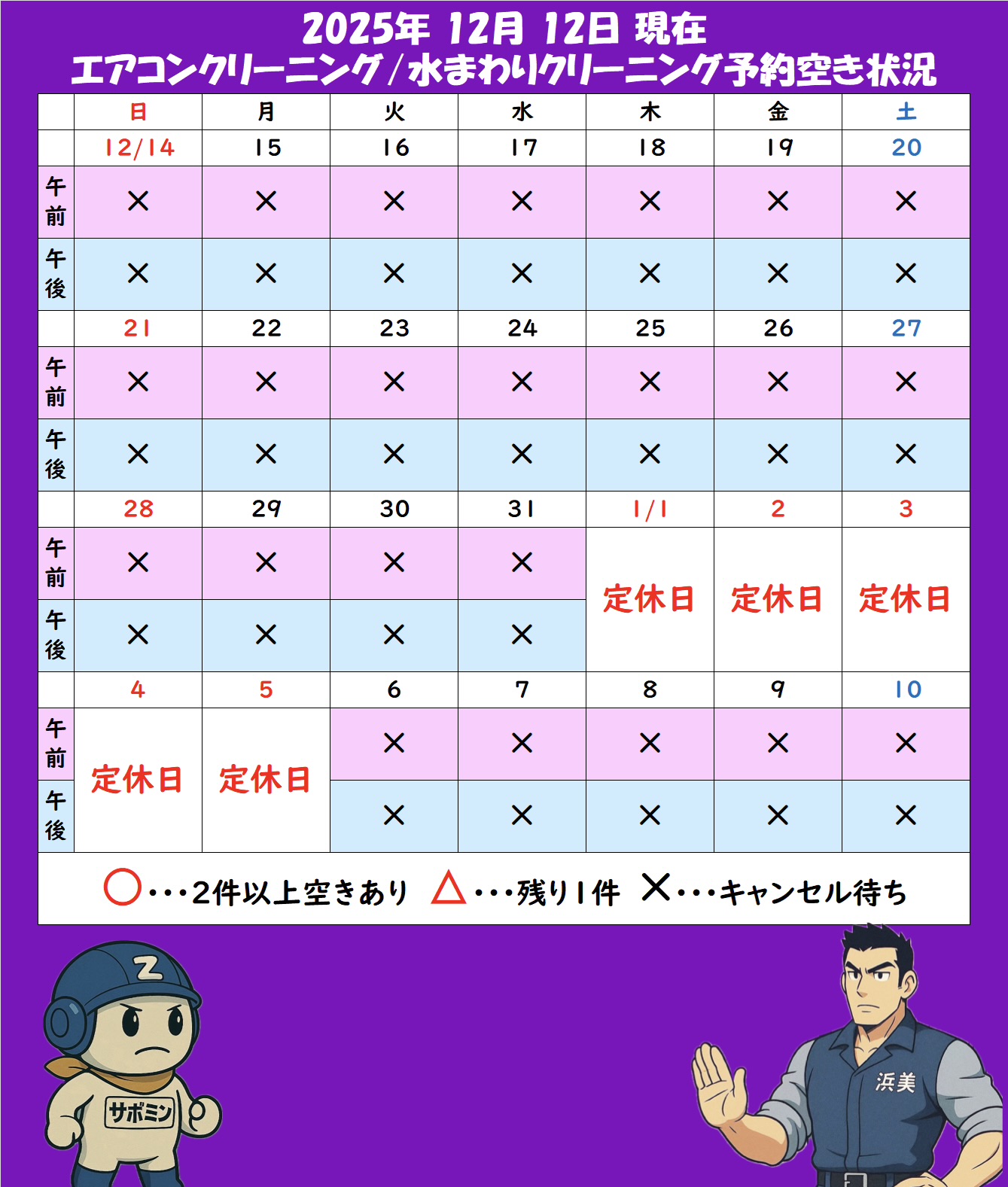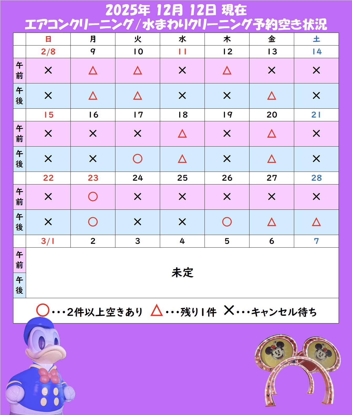 日程によってはキャンセル待ちとなっておりますが、